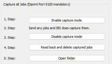 This method is capturing continuously all print jobs which are sent to the Ricoh device and operates on the Diprint (TCP 9100) Port: