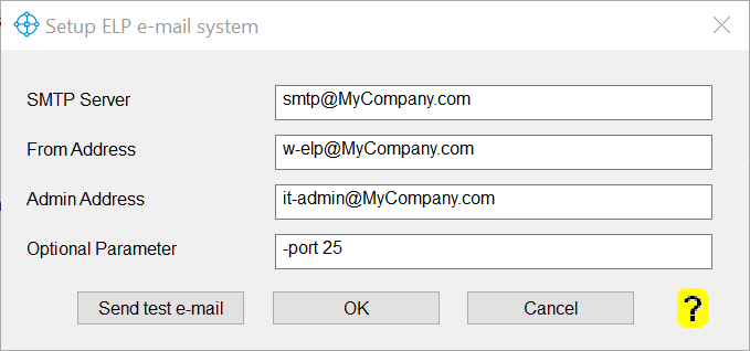 By default W-ELP will use the PowerShell Send-MailMessage cmdlet to send e-mails. The configuration should be done using the "E-mail Call" dialog from within the Admin tab. The text based config file MailConf.ini which can be found in the Workpath folder (e.g. c:\ProgramData\WELP) controls the sending of e-mails and can be adapted e.g. to use other SMTP clients like the 3rd party Send-EMailMessage (supports e.g. oAut2), PowerShell Core or even the deprecated Blat utility.