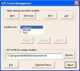 This MS Word Document contains MS Word macros for easy access and position of ELP variables, text, bar codes and tables.