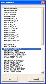 Dynamic text and barcode printing is almost the same. Define the text format and assign variables by clicking on Get variable: