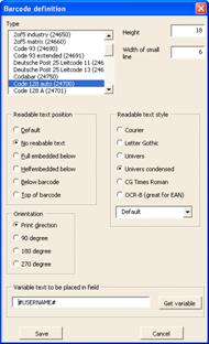 If you want to encode your data as bar code, define your bar code parameters with the window below: