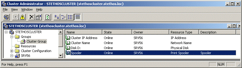 Bring one node active which owns the spooler recourse and the W-ELP Cluster Disk.