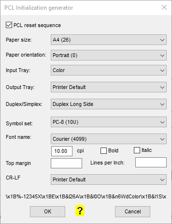 Filling out this form needs at least some knowledge about the printer language PCL from HP.