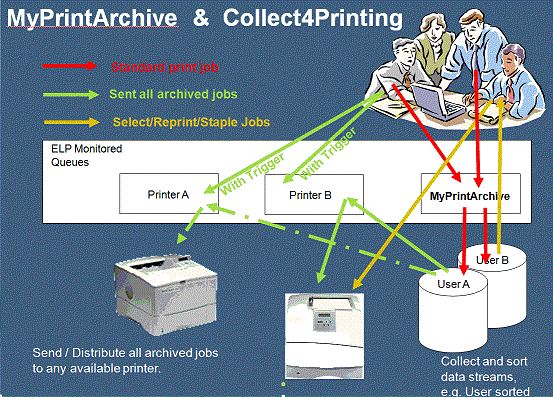 OutArchiveDir=c:\ELPArchive;#USERNAME#\#PRINTDOCNAME# - Another way is to have only one queue, which stores always the data stream, and all the other ones may print the stored jobs on demand. This method has the advantage, that normal jobs are printed directly to the queue / printer and are simply printed and not stored, but important jobs can be stored and released on demand.