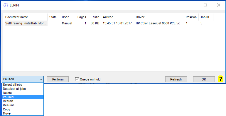 F. Display all actual print jobs of the selected printer queue including offering the possibility to copy, delete or move them.