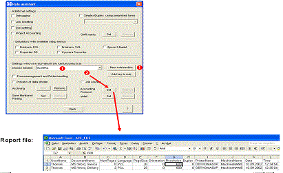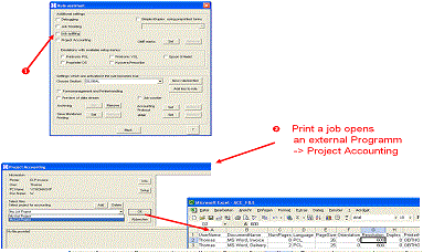 This is it. When the next job arrives (Global) or in that queue (Printer name) or from that user (User name) the Project Accounting Software is automatically launched.