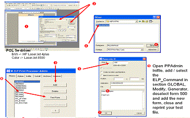 This function can be used for mail merge printing at full printer speed, when the form represents the static part of the mail merge document. - This function is called soft flash, as forms can be loaded dynamically. It also can replace hardware modules like DIMMs, Compact Flash or Hard disks, as ELP automatically searches the data stream for the PCL5 macro commands, and if found checks for an available ELP form, and downloads it.