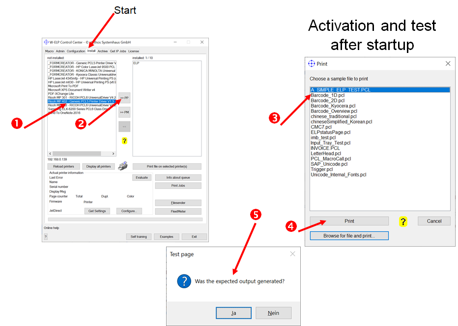 F. Select for testing maybe select in the list of Demo Files the first one "A_SIMPLE_ELP_TEST.PCL" (it is just one page)